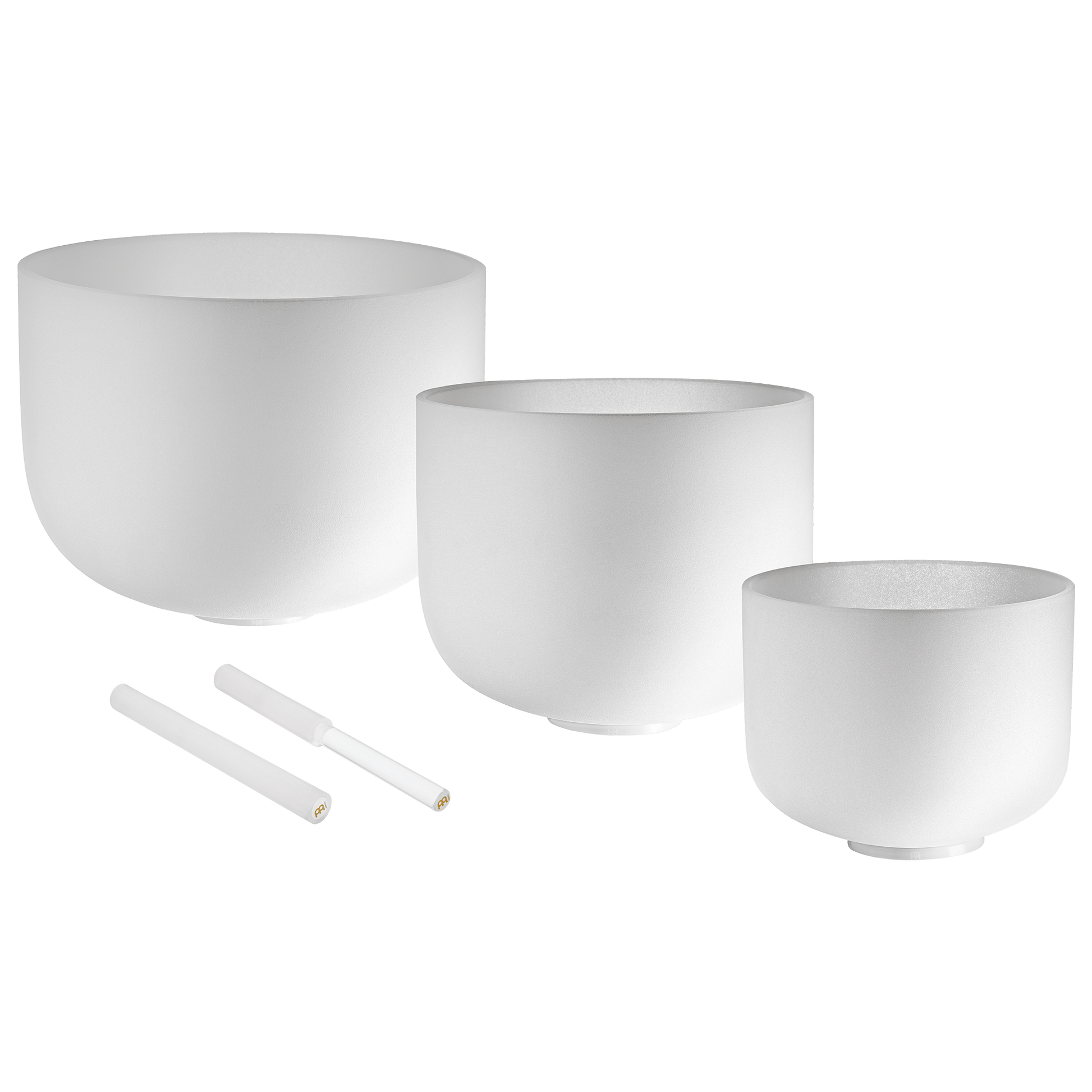 A perfect match of 3 Crystal Singing Bowls. Easily produce harmonious sounds and start delivering high-quality sound baths right away.