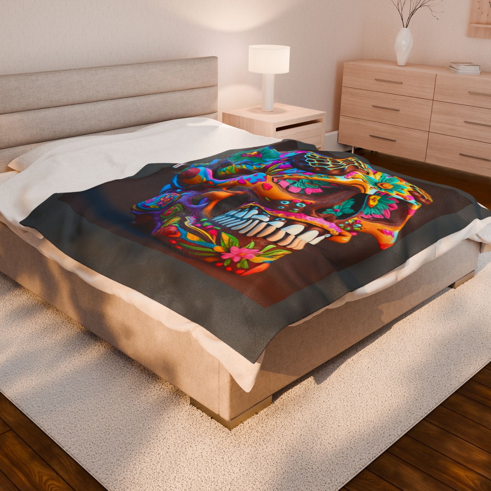 Colorful Sugar Skull Velveteen Plush Blanket — Day of the Dead Decor & Cozy Throw