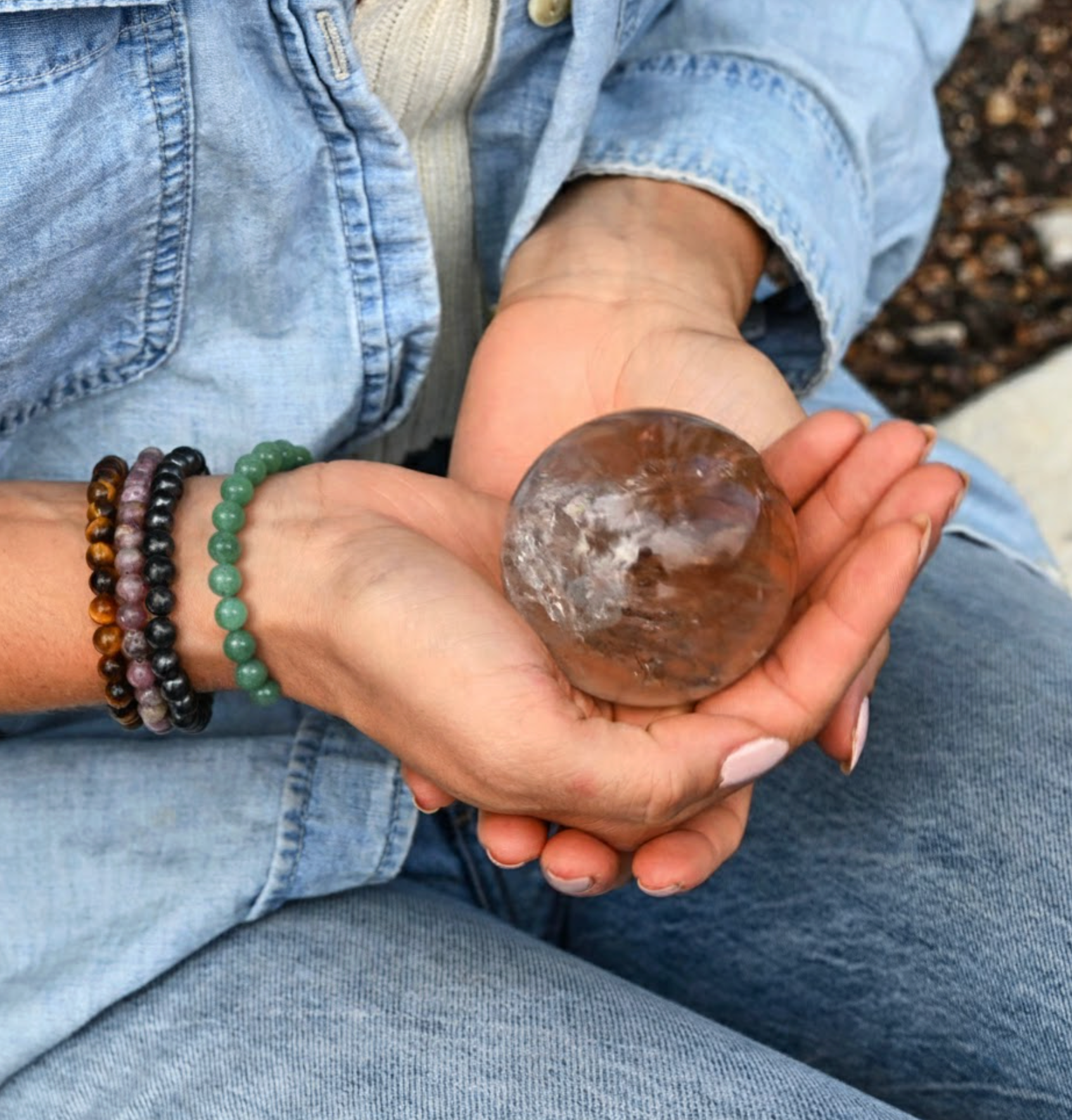 Handmade with polished 8mm Green Aventurine beads sourced from Brazil, this bracelet is a timeless symbol of growth, balance, and opportunity. Its soft green tone carries a soothing, uplifting frequency that supports emotional renewal and prosperity.