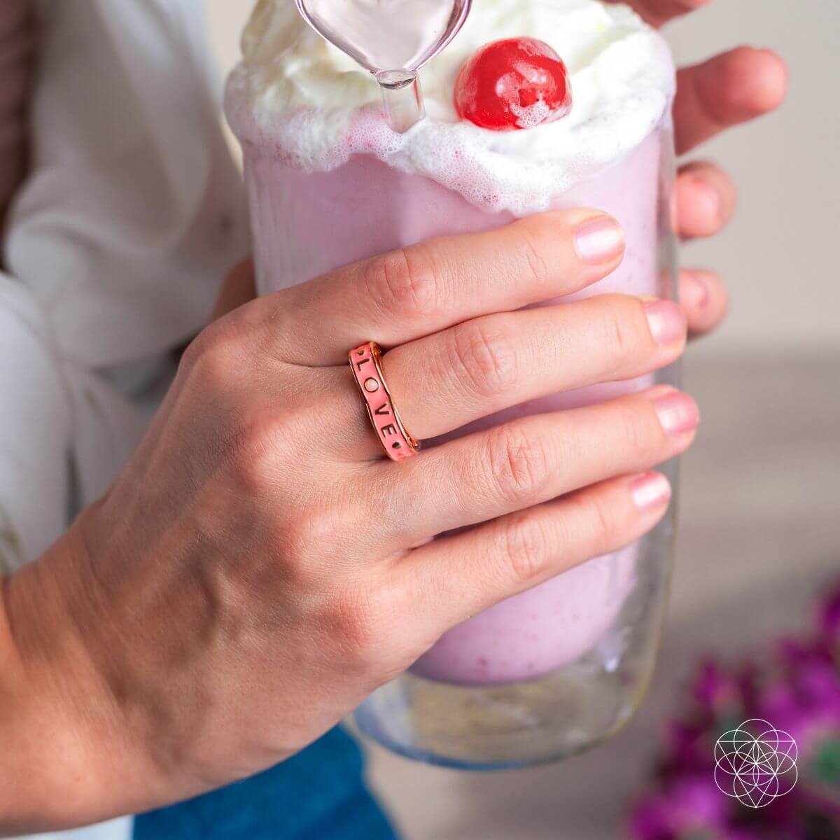 The I Love My Life - Heart Awakening Pink Opal Ring is your daily companion for joy, positivity, optimism, and attracting more love. Wear on the left hand for an added mood boost, optimistic outlook, and positivity. Wear on your right hand to enhance feelings of gratitude and on the left to manifest loving experiences.