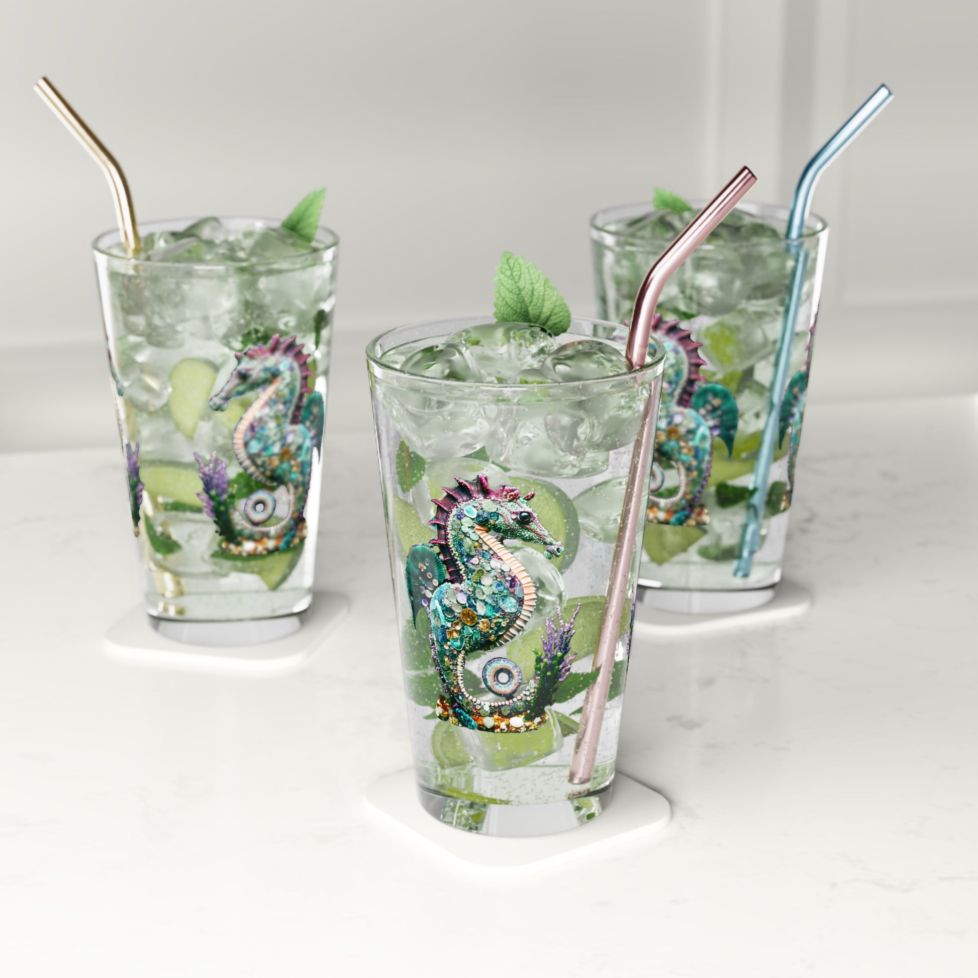 Seahorse Crystal Mosaic Pint Glass – 16oz Ocean-Inspired Art