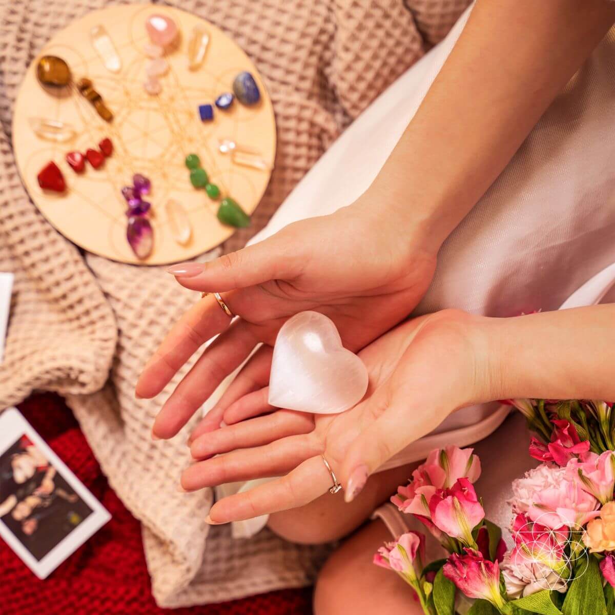 The large Selenite Heart calms you, elevates your intuition and keeps your chakras clear. As Selenite is a natural energy cleanser, you can also use it to regularly cleanse the other stones.