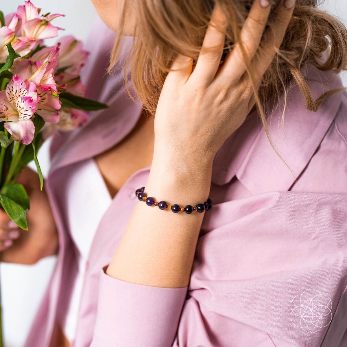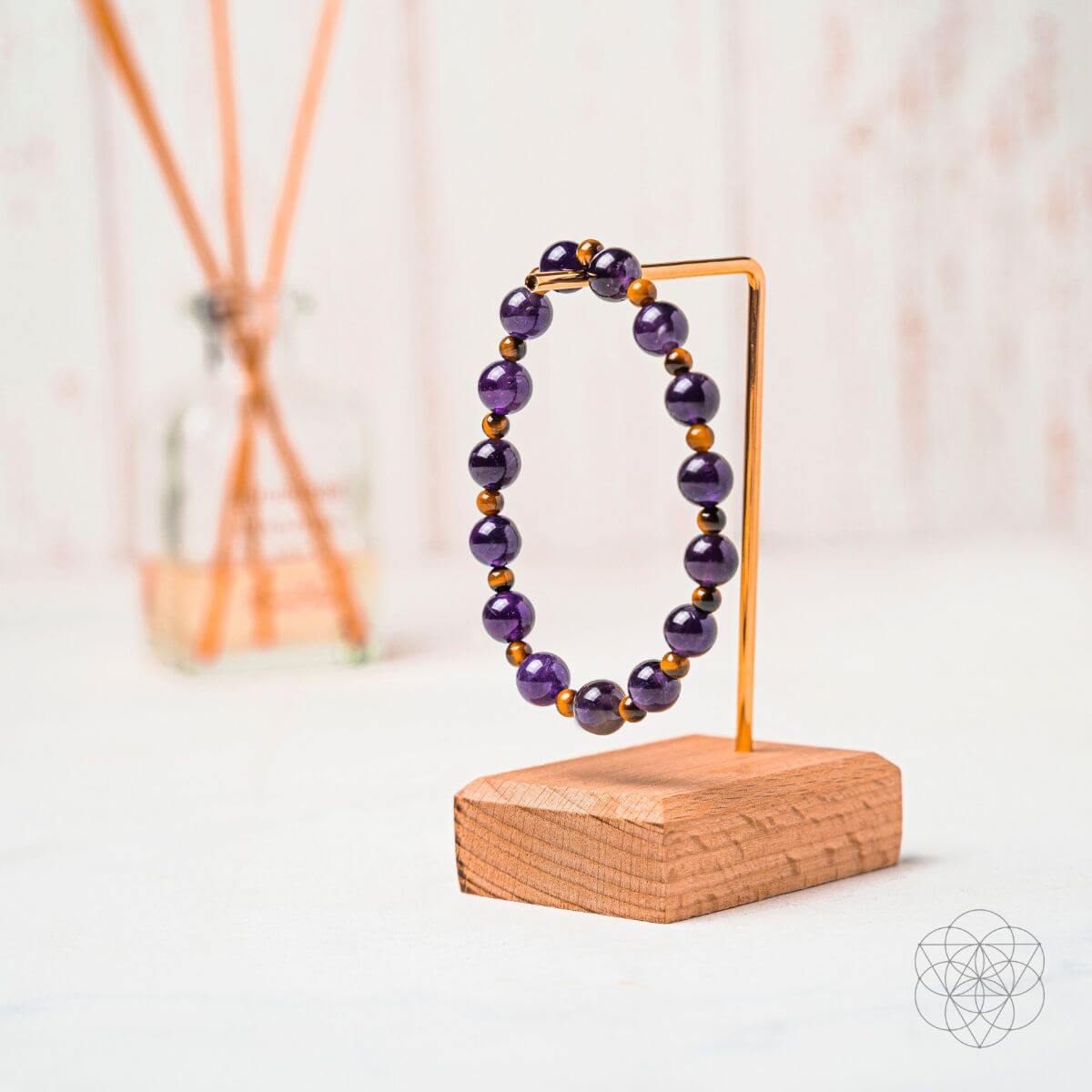Amethyst is the dominating crystal in this gorgeous bracelet, and if you’ve spent any time around Amethysts, you’ll know that hunches are its specialty. It connects you to higher realms of consciousness and helps you extend your awareness beyond the material plane. It produces all these mind-expanding benefits while simultaneously calming the body and soothing tension within your physical aura.