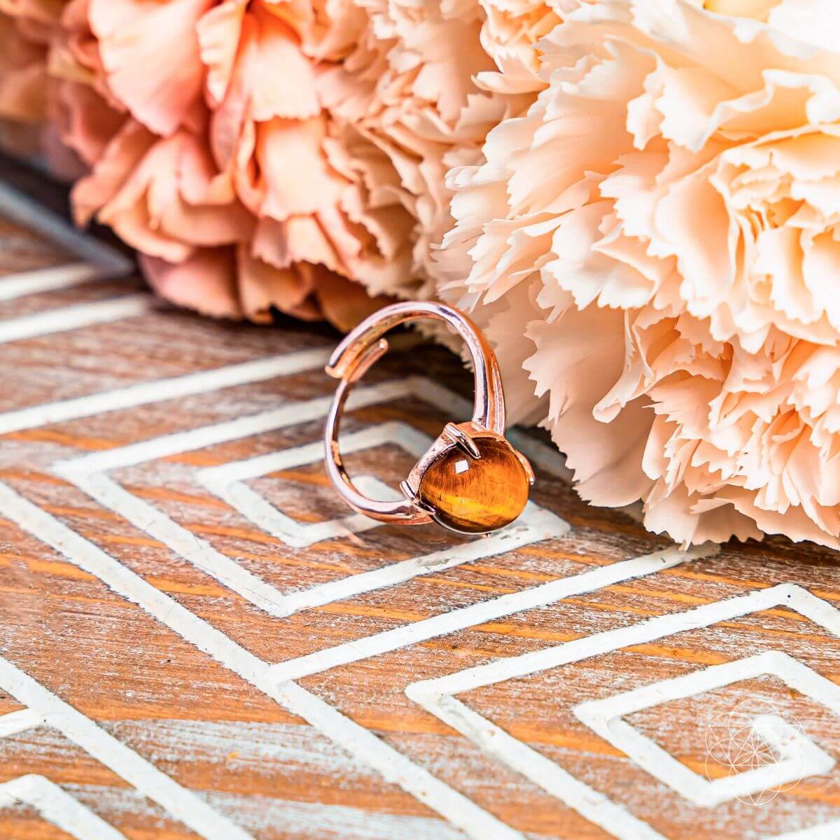 The band of this stunning ring is made from top quality silver, coated with a rose gold sheen, while the eye-catching gemstone is none other than the confidence-booster, Tiger's Eye. The ring is easily adjustable so you can rest assured that there won't be any size issues.